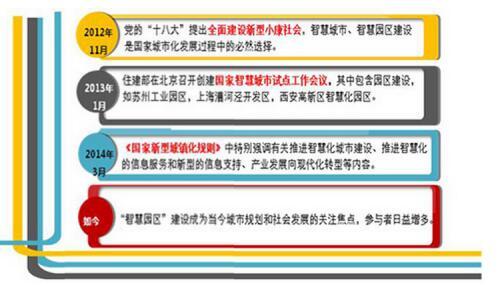 隨著國內(nèi)智慧城市建設(shè)步伐的不斷加快,黨中央和國務(wù)院也更加注重智慧園區(qū)的建設(shè)與發(fā)展,從2012年至今,頒布了多項政策推進(jìn)智慧園區(qū)的建設(shè),國內(nèi)更多的各類型園區(qū)投身于園區(qū)的智慧化建設(shè)中。